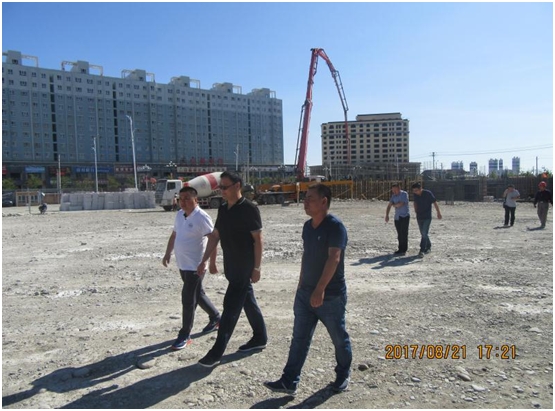 2017年8月21日,公司領導到霍爾果斯市體育中心項目部檢查指導工作。檢查內容主要包括施工現(xiàn)場的生產進度、項目主體建設、項目安全文明施工情況、項目的管理文件及合同等。