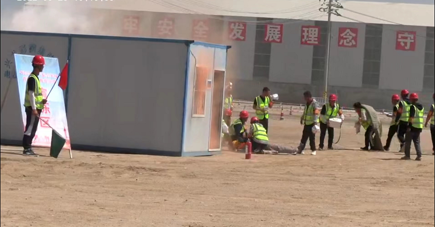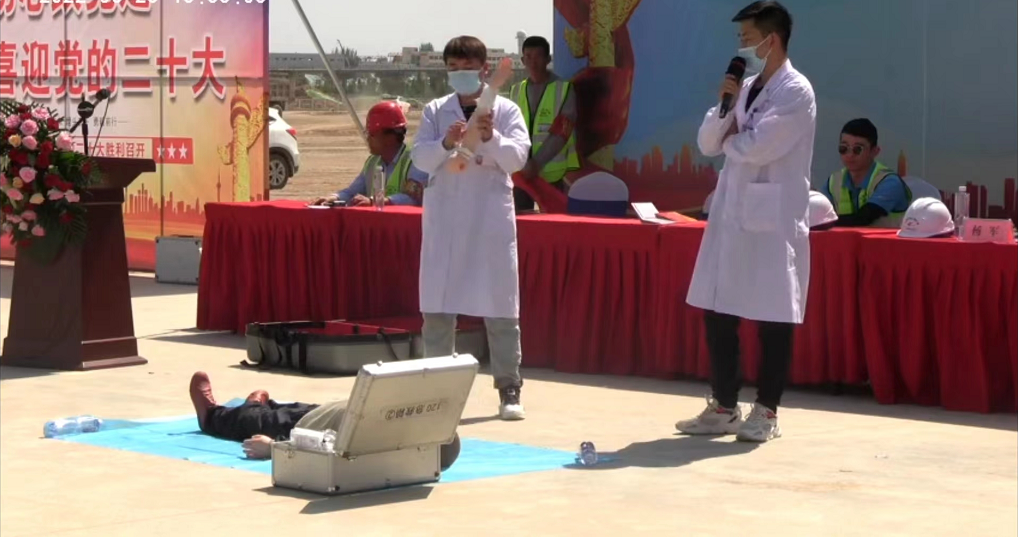 此次演練模擬項目現(xiàn)場駐地宿舍發(fā)生電器火災(zāi),項目部立即啟動應(yīng)急預(yù)案,救援組第一時間撥打消防救援電話,組織人員有序撤離到安全區(qū)域。參演人員均嚴肅對待,過程規(guī)范迅速,演練活動順利完成。演練結(jié)束后,項目部組織開展了消防急救培訓(xùn),包含項目職工使用干粉滅火器進行滅火操作,對模擬假人進行心肺復(fù)蘇等。