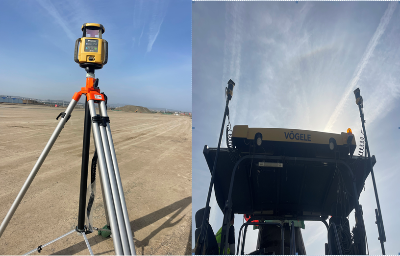 我司首次在烏魯木齊機(jī)場(chǎng)使用mmGPS 3D攤鋪技術(shù),mmGPS 3D攤鋪技術(shù)是指通過衛(wèi)星全球?qū)Ш蕉ㄎ幌到y(tǒng)和激光高精度測(cè)量系統(tǒng),立體控制攤鋪的高程精度和平面精度。該技術(shù)克服了常規(guī)掛鋼線施工時(shí)掛鋼線下垂、傳感器跳動(dòng)等問題,同時(shí)減少了測(cè)量放樣的工作內(nèi)容,很好地控制了結(jié)構(gòu)層厚度、高程及平整度,尤其在多機(jī)聯(lián)鋪?zhàn)鳂I(yè)方式下效果明顯,實(shí)現(xiàn)了“機(jī)械化換人、自動(dòng)化減人”的理念,減少了人員投入的同時(shí)減少了材料的浪費(fèi),降低了項(xiàng)目的安全風(fēng)險(xiǎn),產(chǎn)生了明顯的經(jīng)濟(jì)效益。