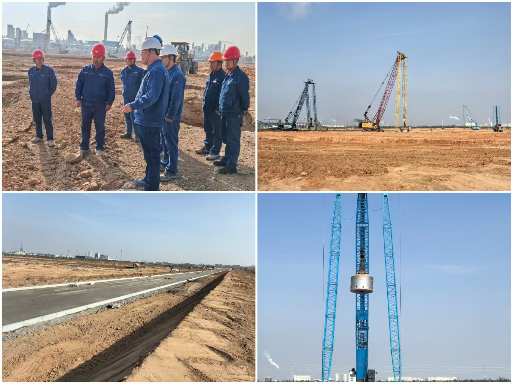 10月19日,國家能源集團寧夏煤業(yè)公司煤制油化工工程建設(shè)指揮部領(lǐng)導(dǎo)對我司承攬的費托尾氣制 LNG 項目地基強夯工程的安全管理、質(zhì)量控制、進度控制、灑水降塵等工作進行現(xiàn)場檢查指導(dǎo)。
