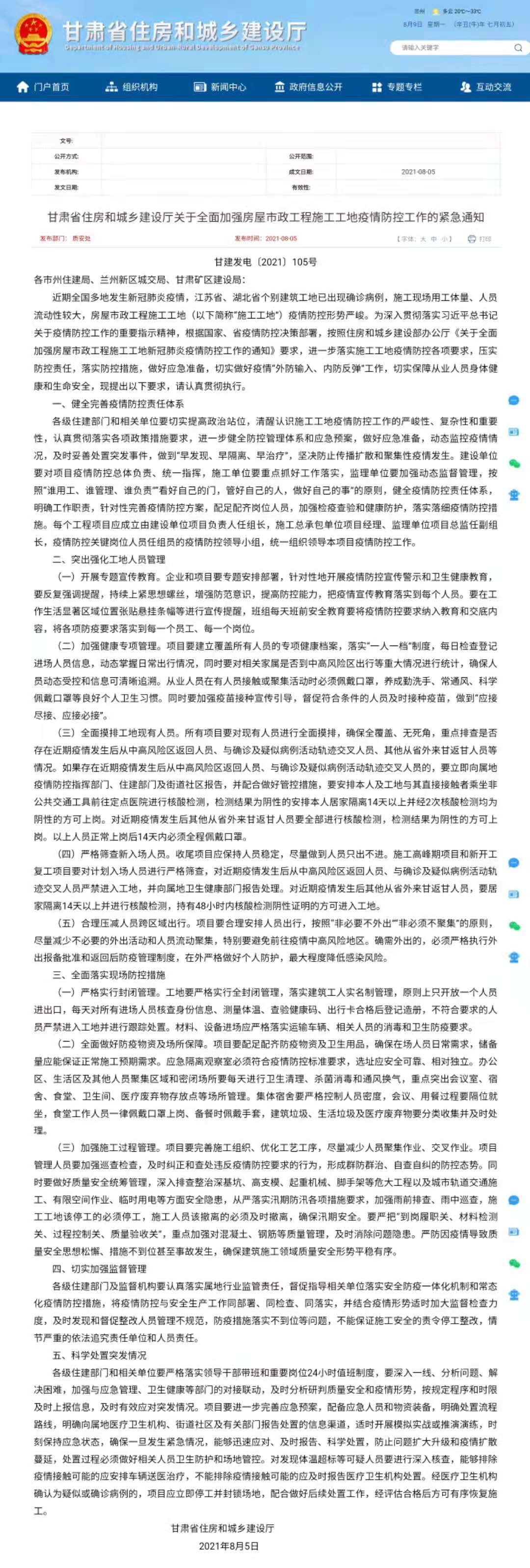 為深入貫徹落實(shí)習(xí)近平總書(shū)記關(guān)于疫情防控工作的重要指示精神,根據(jù)國(guó)家、省疫情防控決策部署,按照住房和城鄉(xiāng)建設(shè)部辦公廳《關(guān)于全面加強(qiáng)房屋市政工程施工工地新冠肺炎疫情防控工作的通知》要求,確保安全生產(chǎn)和正常施工生產(chǎn)秩序,現(xiàn)將《甘肅省住房和城鄉(xiāng)建設(shè)廳關(guān)于全面加強(qiáng)房屋市政工程施工工地疫情防控工作的緊急通知》轉(zhuǎn)發(fā)給你們,請(qǐng)各單位遵照?qǐng)?zhí)行。
